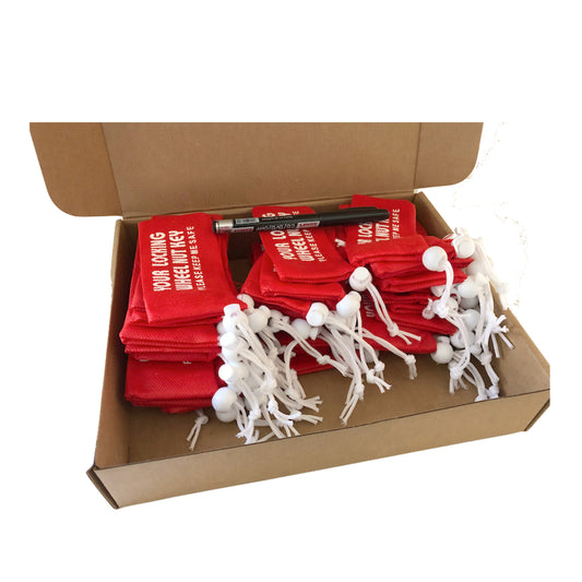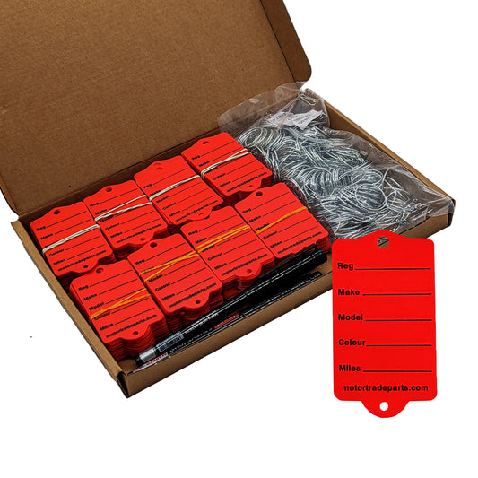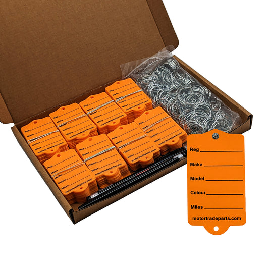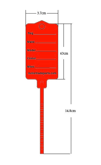 Long-lasting Car Key Tags available in Red, Yellow, Orange and Blue. Available in Self Locking Key tags or Plastic Key tags with Rings. Locking Wheel nut bags are also available.
