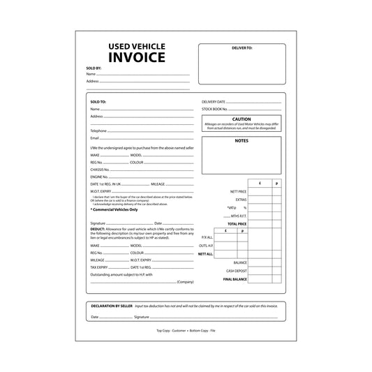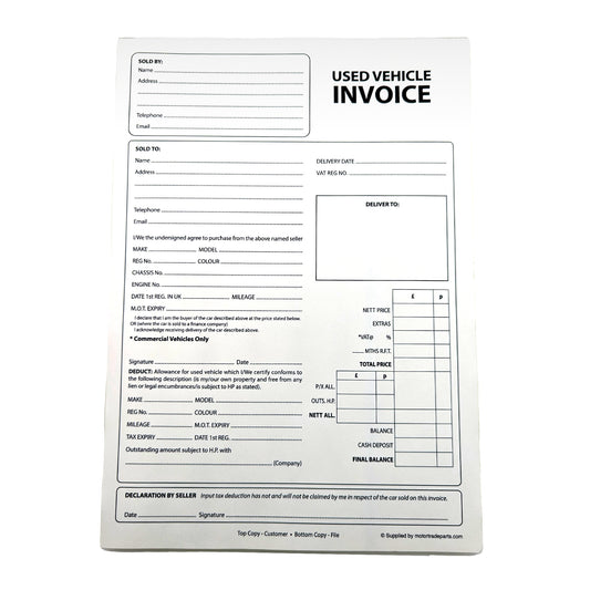 A4 Used Car Vehicle Sales Invoice Pad & A5 Deposit Pad