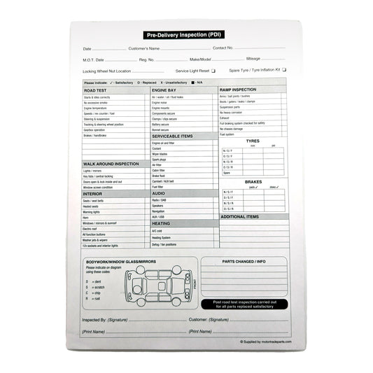Vehicle Invoice Pads and Replacement Service books are a great way to sell your vehicles. Pre delivery inspection pads and Trade Sales invoice pads are also needed to supply customers.